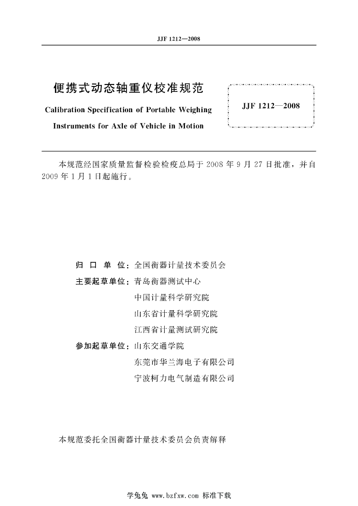青岛衡器测试中心、中国计量科学研究院、山东省计量科学研究院、江西省计量测试研究院、山东交通学院、东莞市华兰海电子有限公司、宁波柯力电气制造有限公司