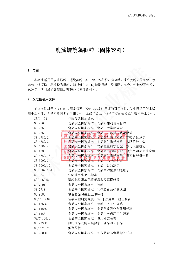 Q/JLCXT 0046S-2022 鹿筋螺旋藻颗粒(固体饮料)