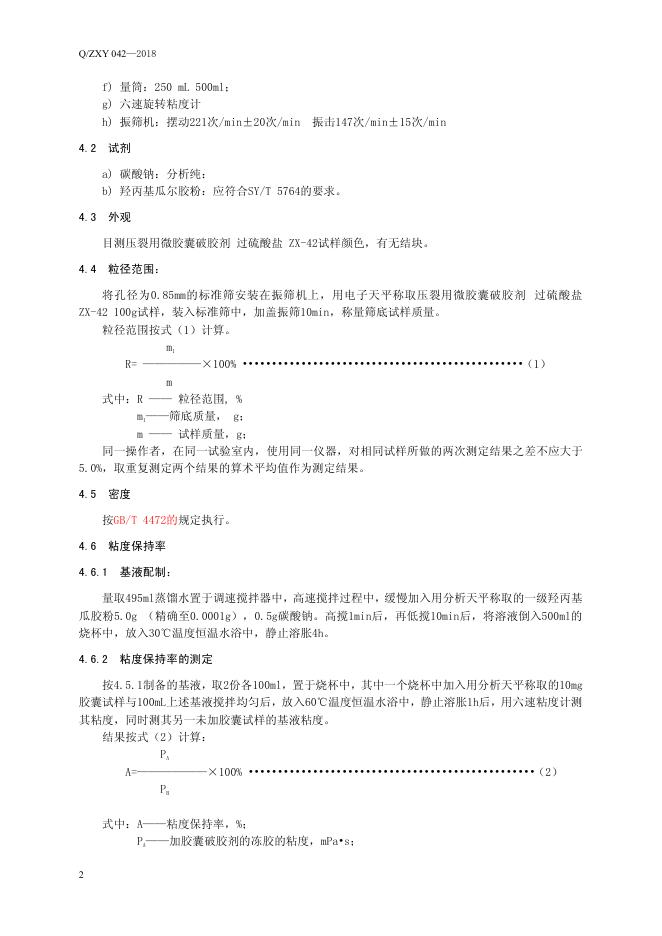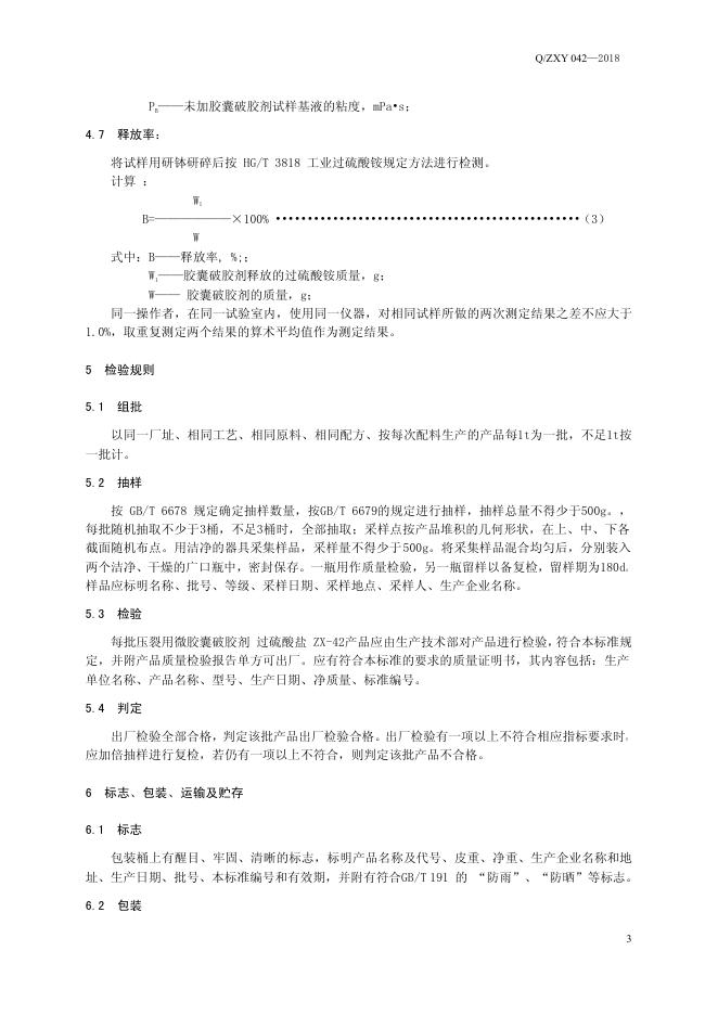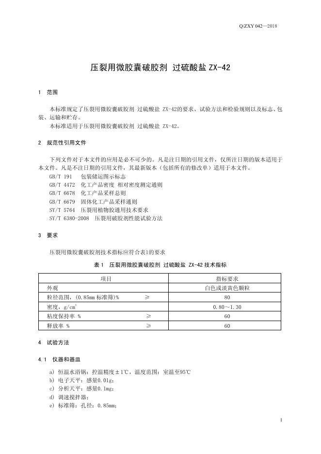 Q/ZXY 042-2018 压裂用微胶囊破胶剂 过硫酸盐 ZX-42