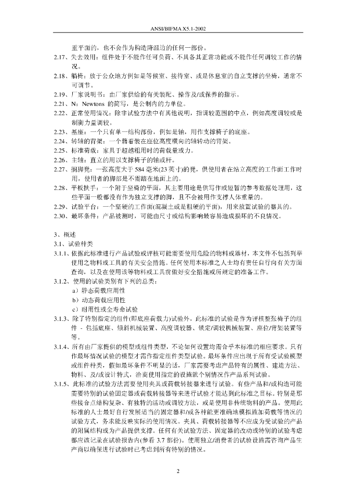 ANSI/BIFMA X5.1-2002 美国国家标准商业及机构家具制造商协会 一般用途办公椅试验