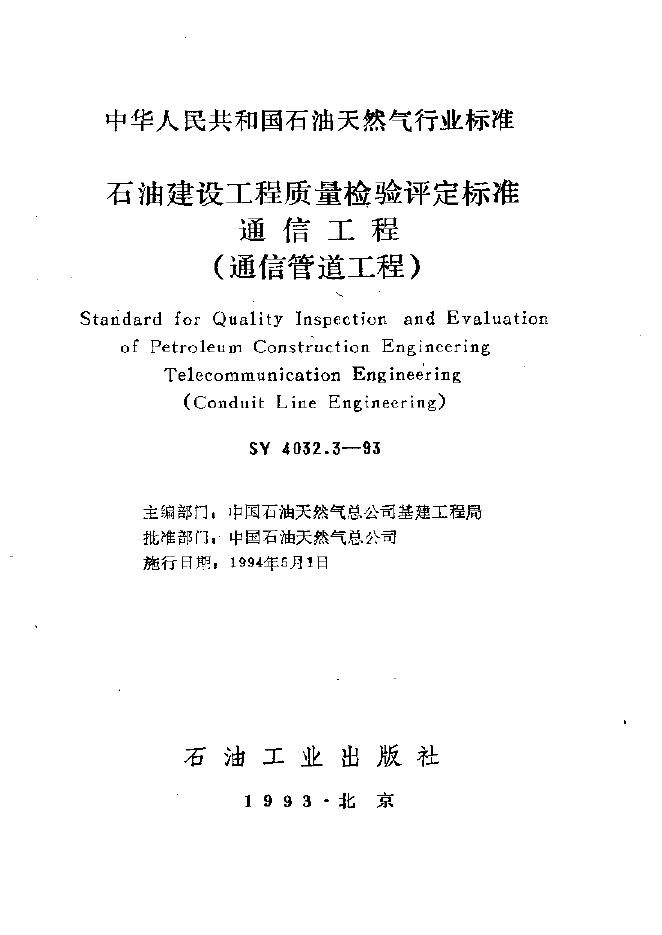 SY 4032.3-1993 石油建设工程质量检验评定通信工程通信管道工程