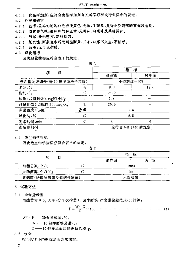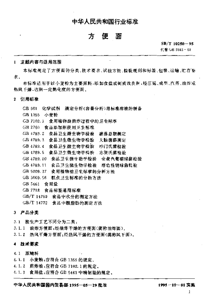 SB/T 10250-1995 方便面(LS/T 3211-1995)