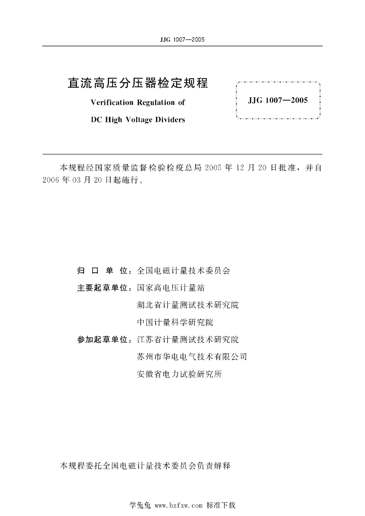 国家高电压计量站、湖北省计量测试技术研究院、中国计量科学研究院、江苏省计量测试技术研究院、苏州市华电电气技术有限公司、安徽省电力试验研究所