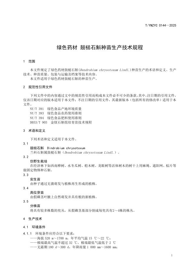 T/YNZYC 0144-2025 绿色药材 鼓槌石斛种苗生产技术规程