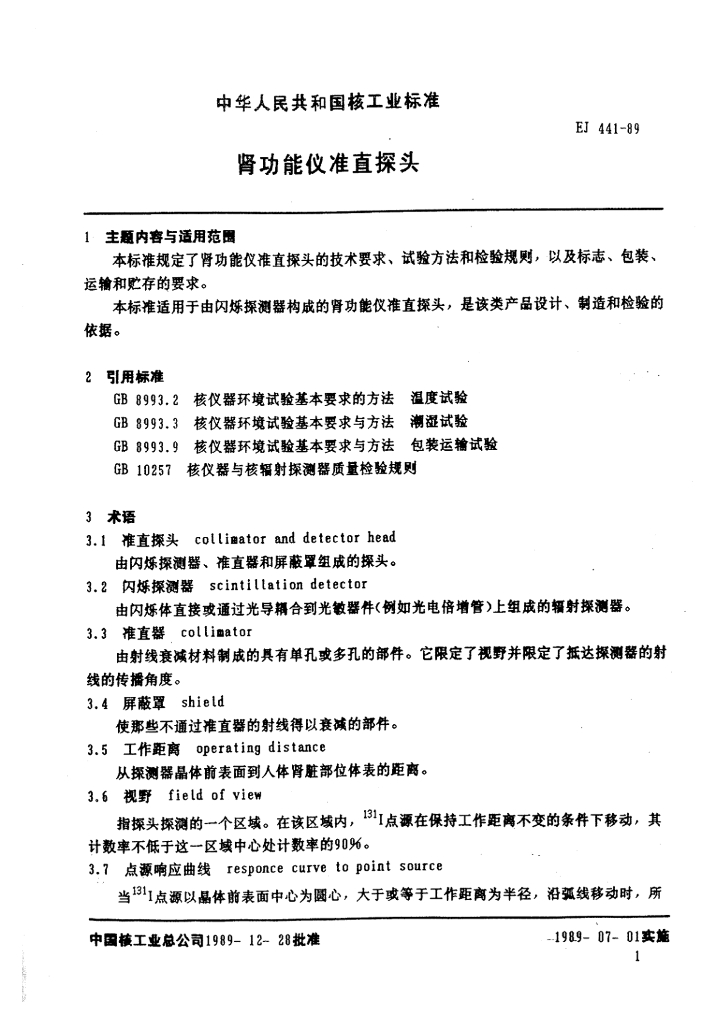 EJ 441-1989 肾功能仪准直探头