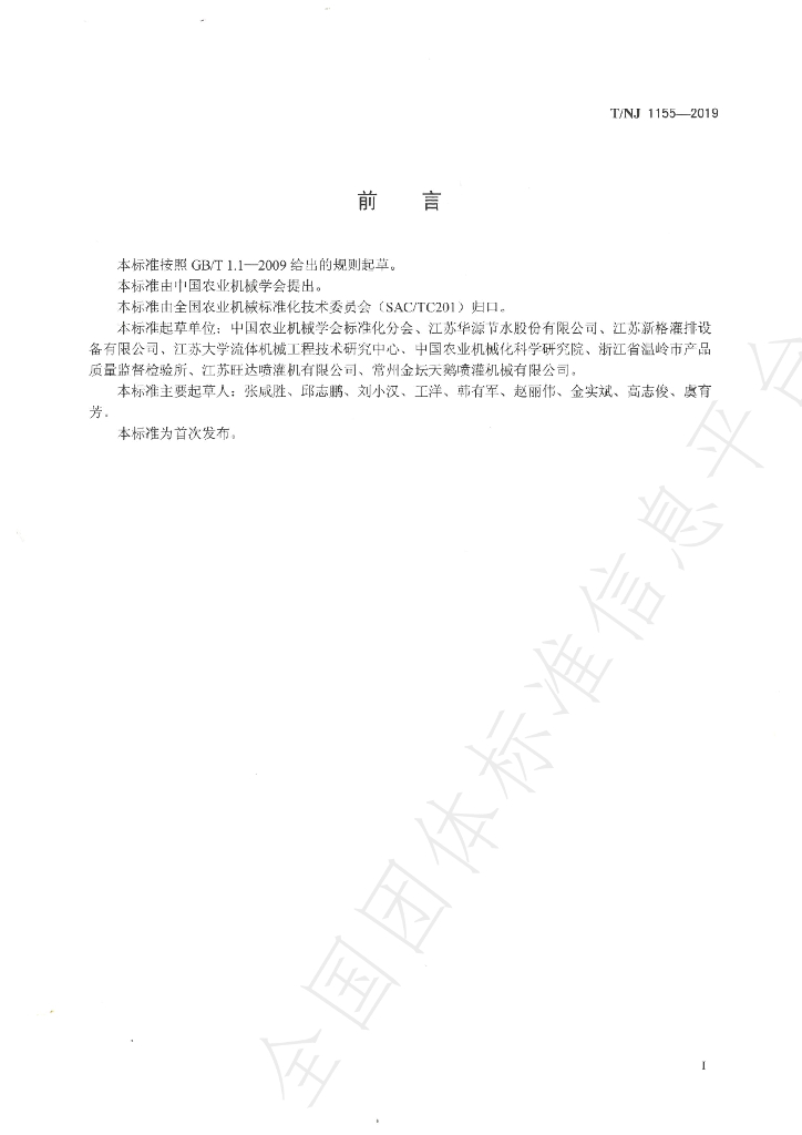 中国农业机械学会标准化分会、江苏华源节水股份有限公司、江苏新格灌排设备有限公司、江苏大学流体机械工程技术研究中心、中国农业机械化科学研究院、浙江省温岭市产品质量监督检验所、江苏旺达喷灌机有限公司、常州金坛天鹅喷灌机械有限公司