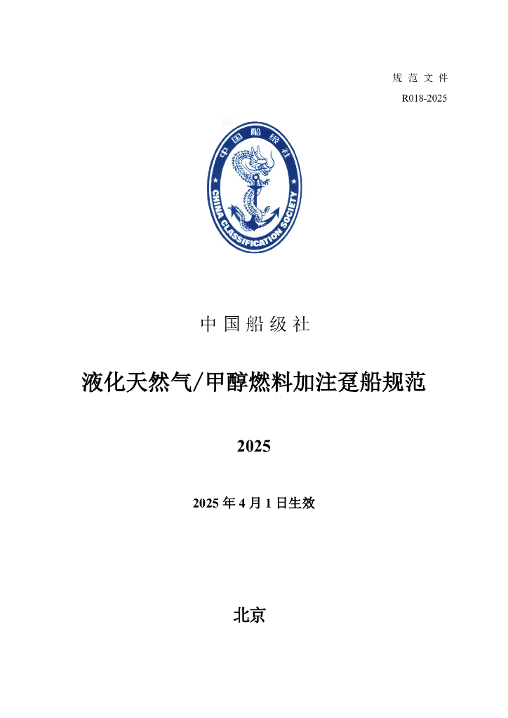 中国船级社(CCS):液化天然气甲醇燃料加注趸船规范2025