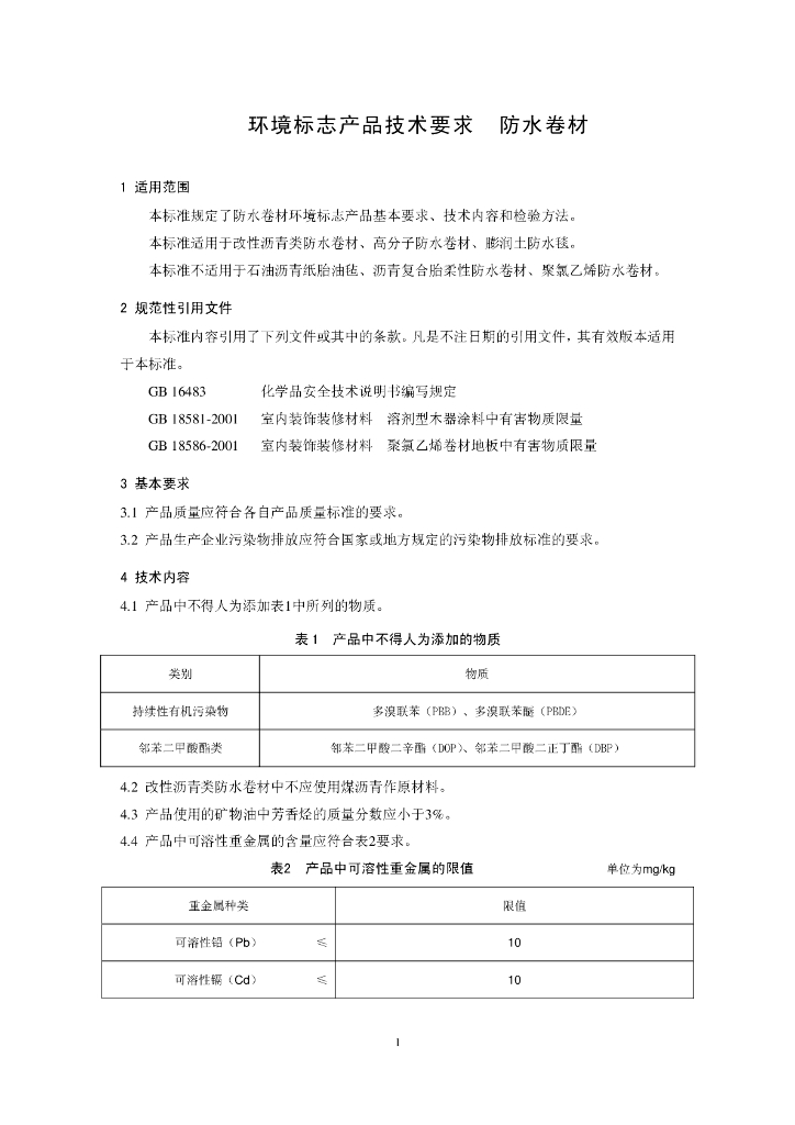 HJ 455-2009 环境标志产品技术要求 防水卷材