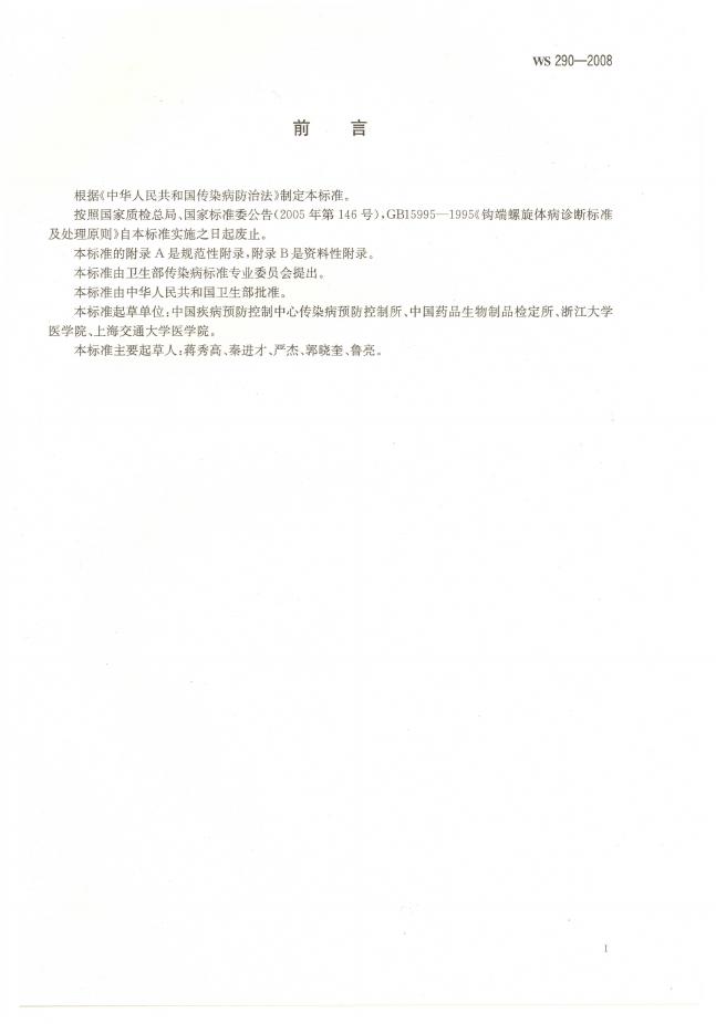 WS 290-2008 钩端螺旋体病诊断标准