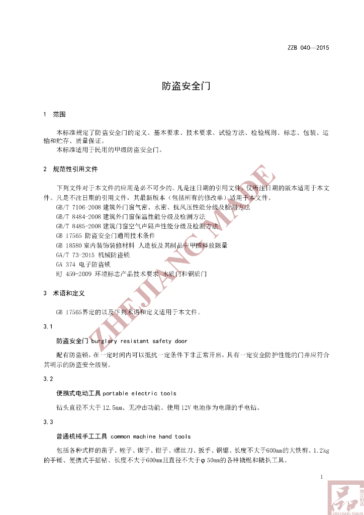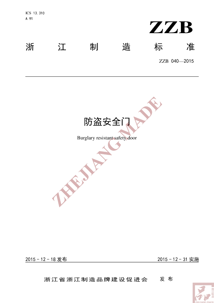 本标准起草单位:浙江方圆检测集团股份有限公司、永康市门业协会、步阳集团有限公司、王力集团有限公司、群升集团有限公司、永康市质量技术监督检测中心。