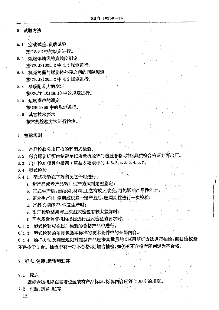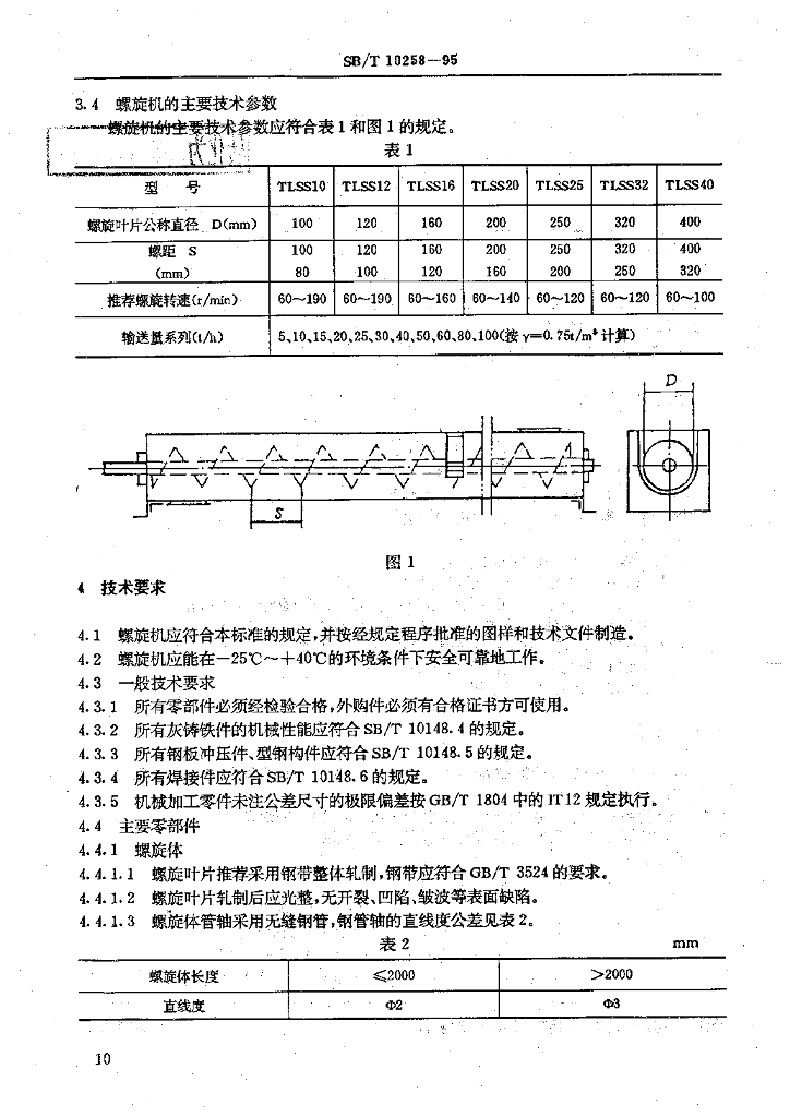 SB/T 10258-1995 水平螺旋输送机