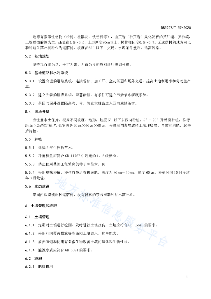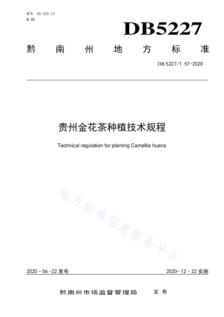 DB5227/T 57-2020 贵州金花茶种植技术规程