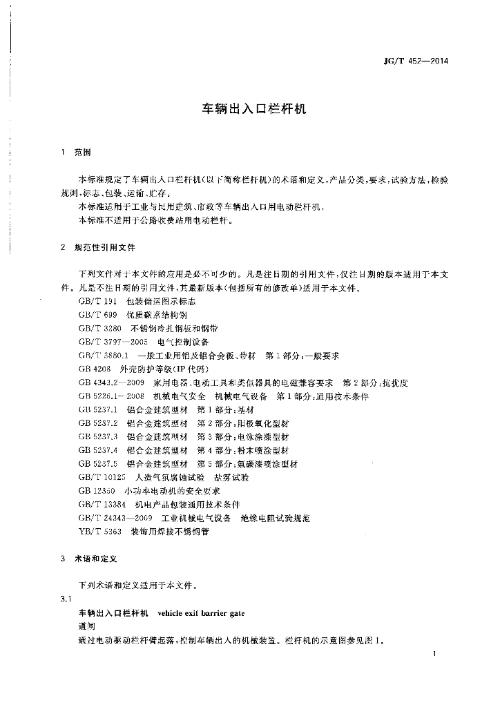 JG/T 452-2014 车辆出入口栏杆机