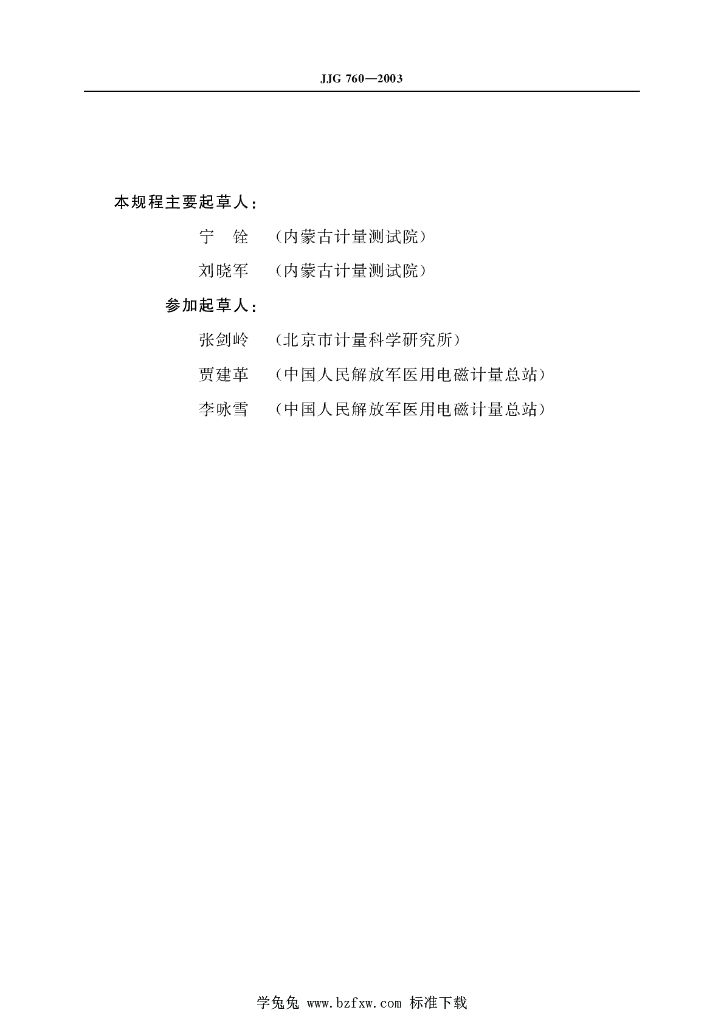 宁铨(内蒙古计量测试院)、刘晓军(内蒙古计量测试院)、张剑岭(北京市计量科学研究所)、贾建革(中国人民解放军医用电磁计量总站)、李咏雪(中国人民解放军医用电磁计量总站)