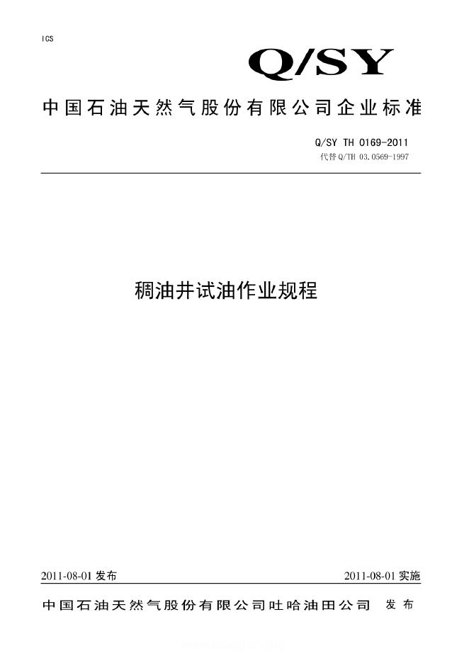 SY/T 6016-1994 稠油井试油试采作业规程