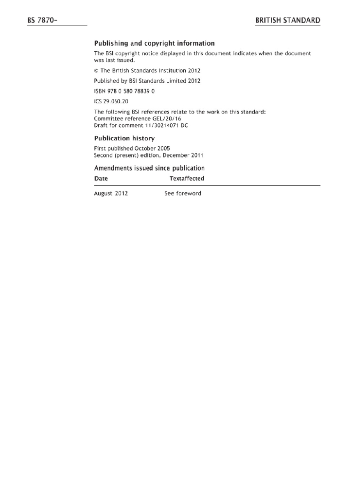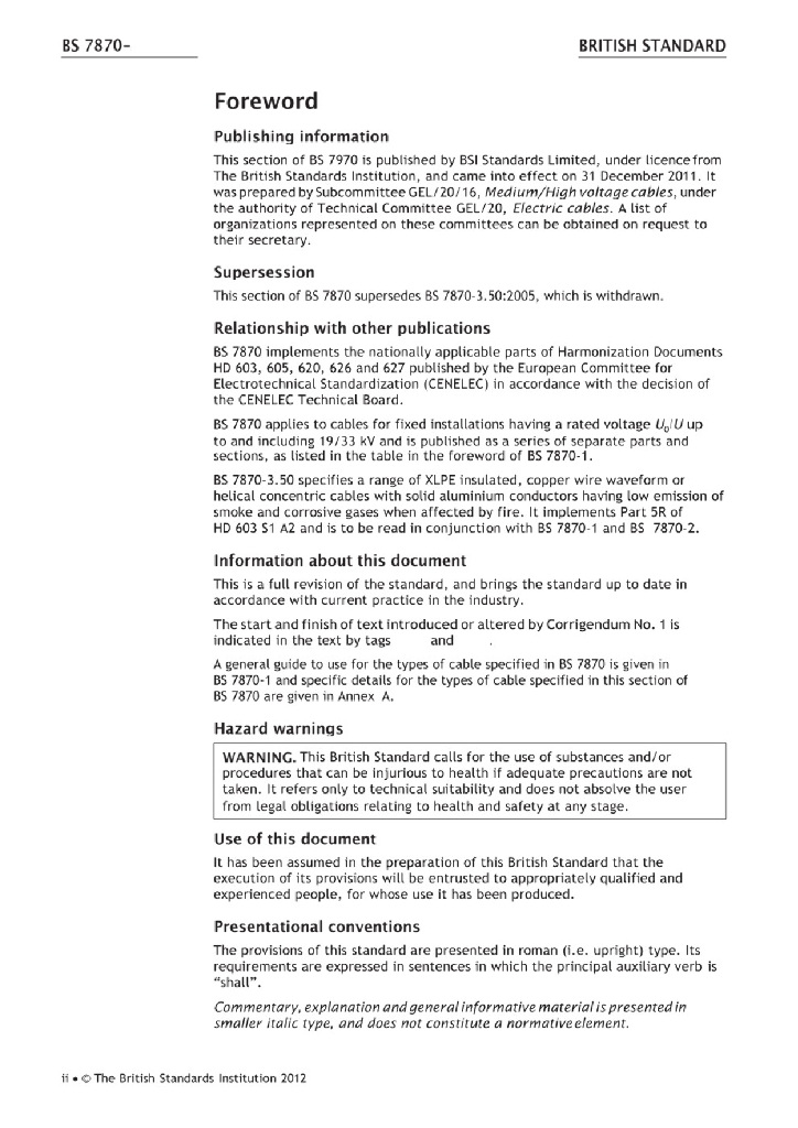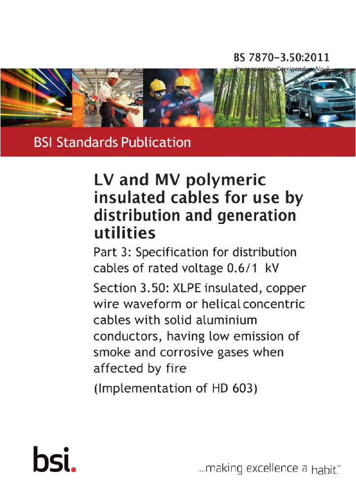 BS 7870-3.50:2011 用于配电和发电设备的低压和中压聚合物绝缘电缆 3部分 额定电压为0.6 1KV配电电缆规格。第3.50节 交联聚乙烯绝缘、铜线或螺旋形实心铝导体同轴电缆,受火灾影响时具有低排放的烟雾和腐蚀性气体