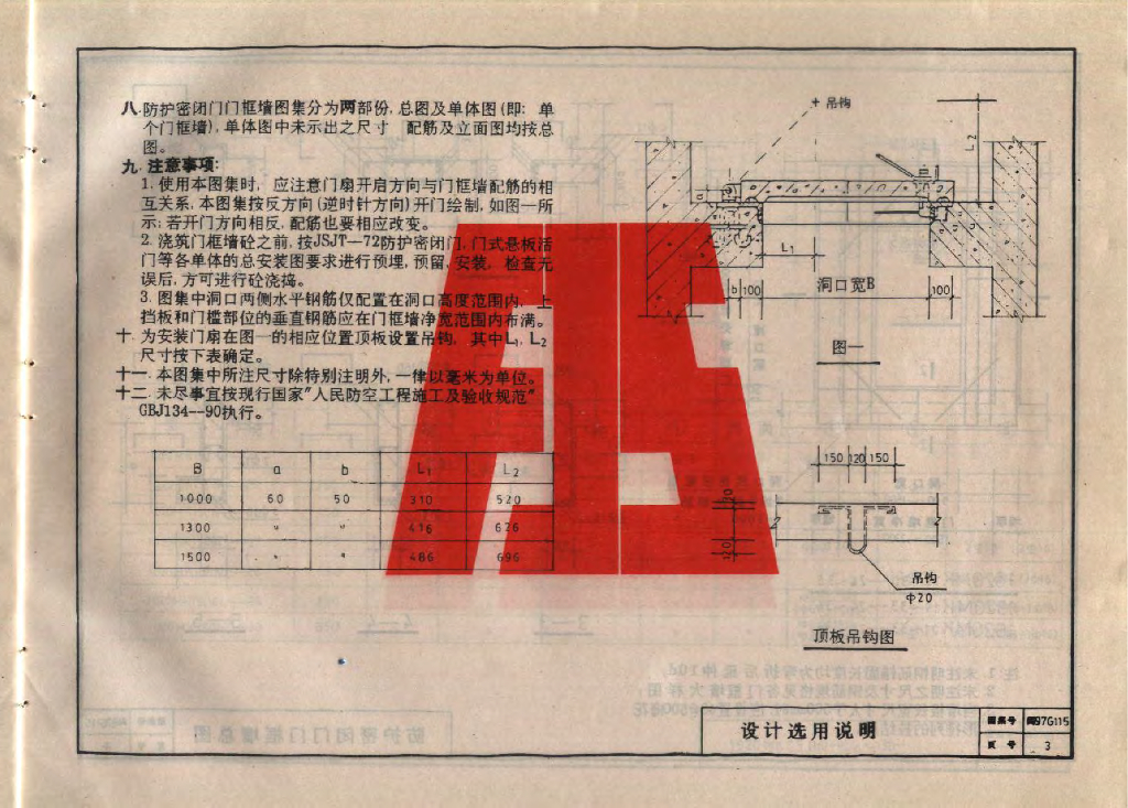 闽97G115 防空地下室门框墙结构图(六级人防)图集