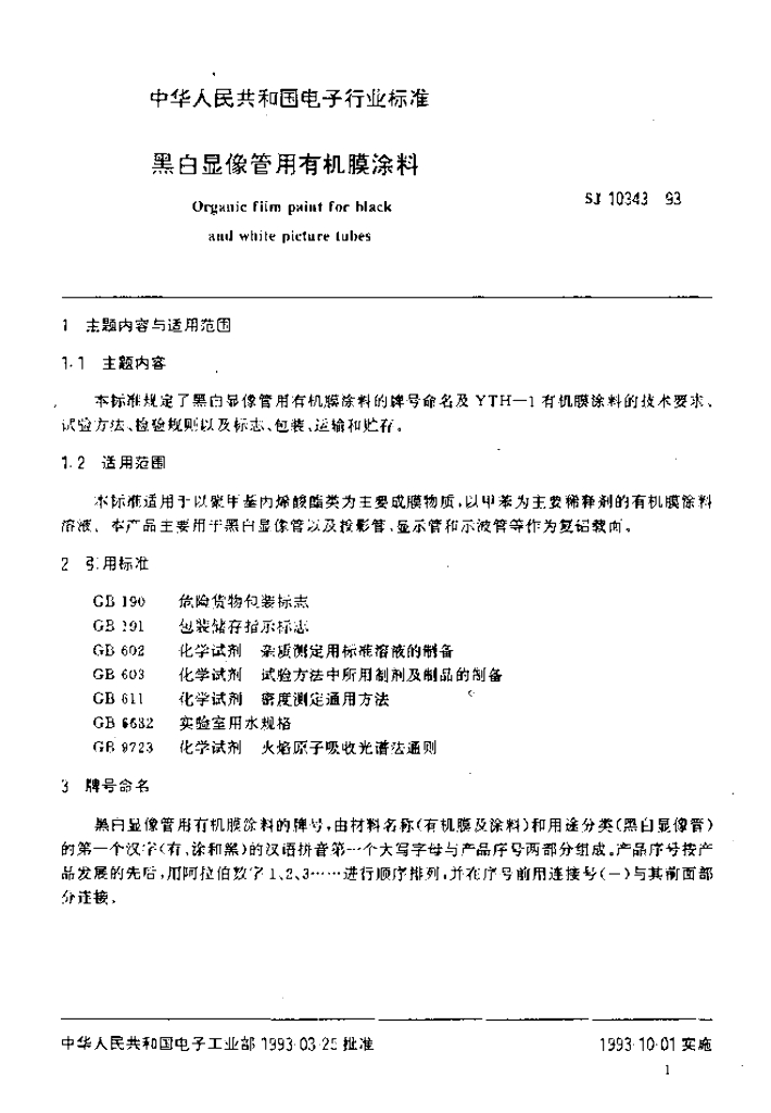 SJ/T 10343-1993 黑白显像管用有机膜涂料