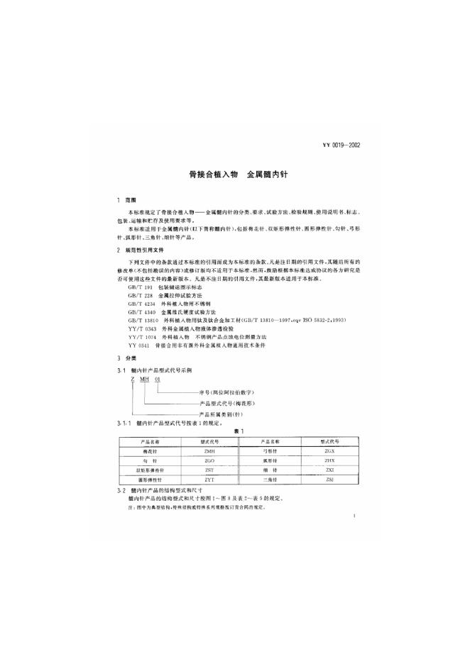 YY 0019-1990 髓内针