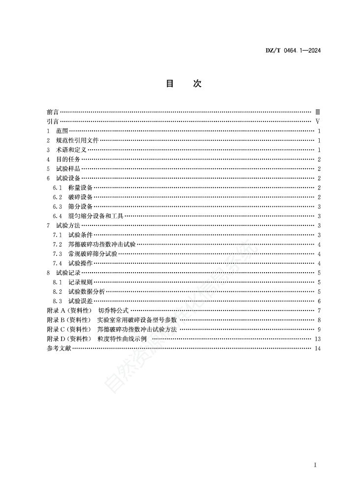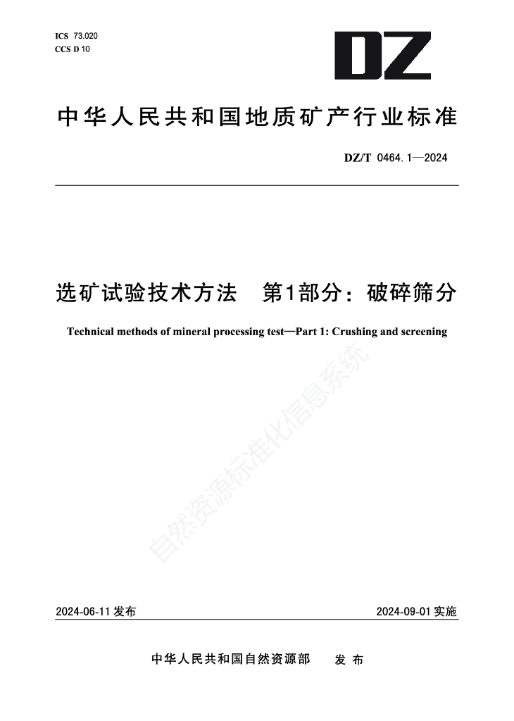 DZ/T 0464.1-2024 选矿试验技术方法 第1部分:破碎筛分