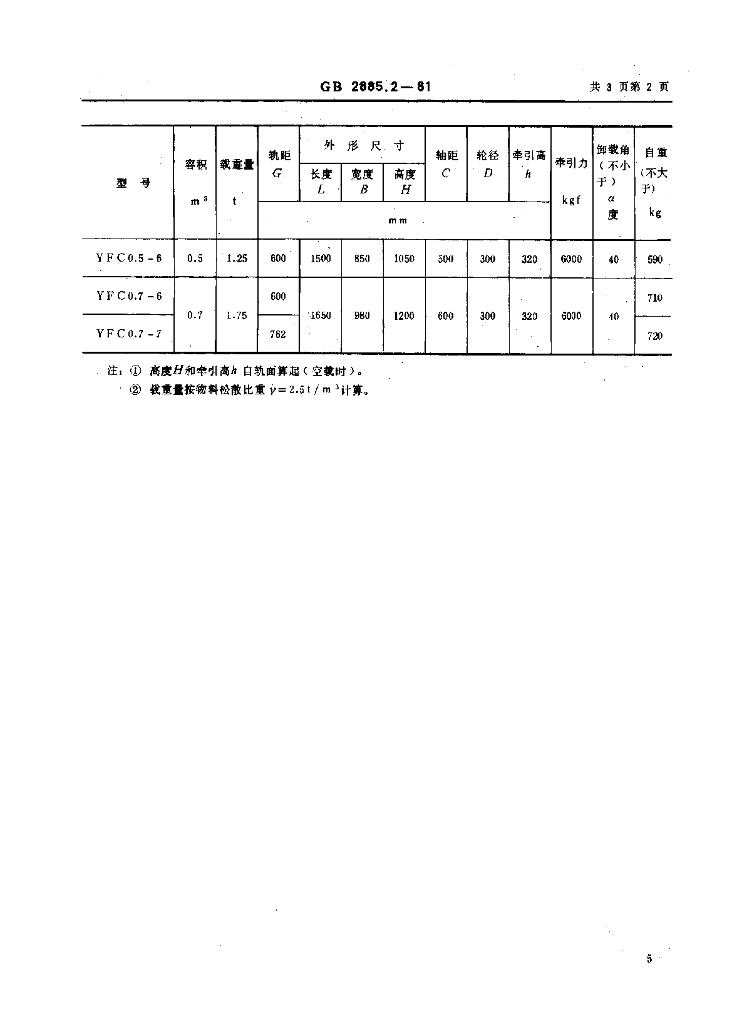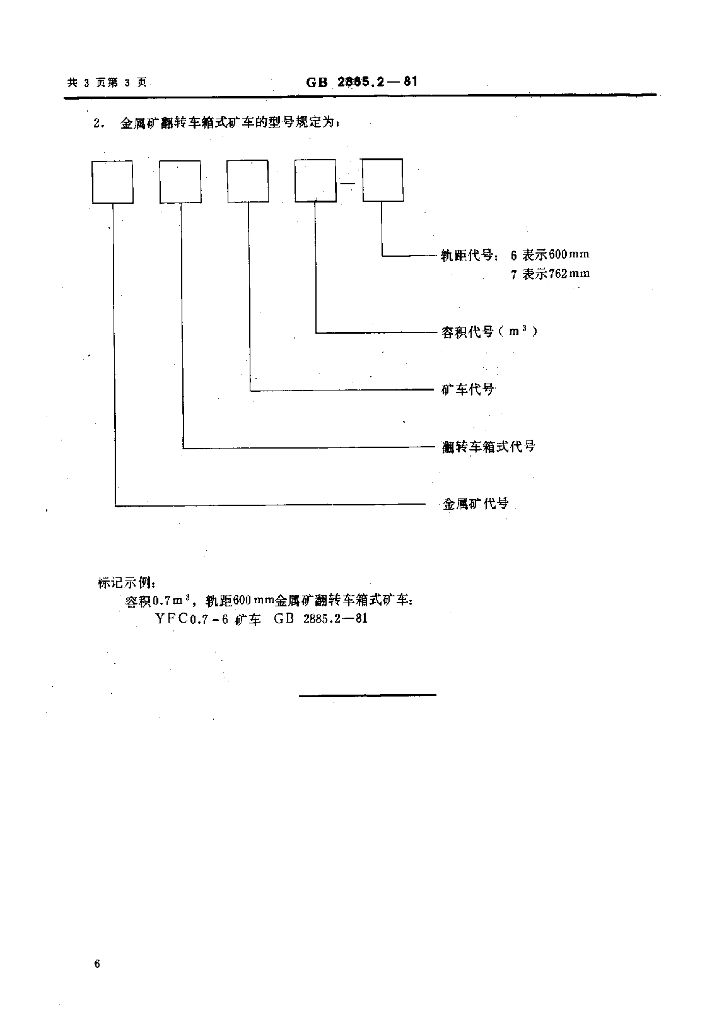 GB/T 2885.2-1981 金属矿翻转车箱式矿车 基本参数及尺寸