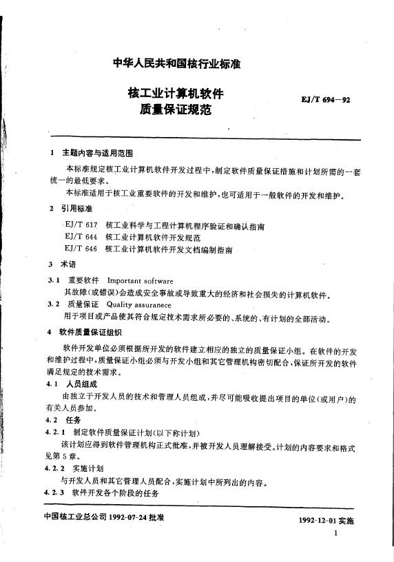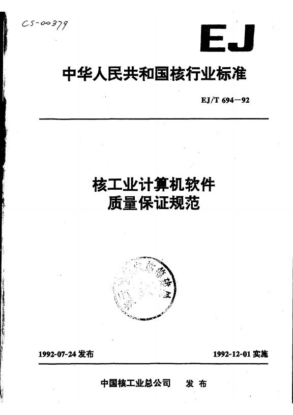 EJ/T 694-1992 核工业计算机软件质量保证规范