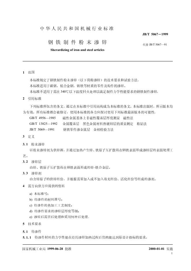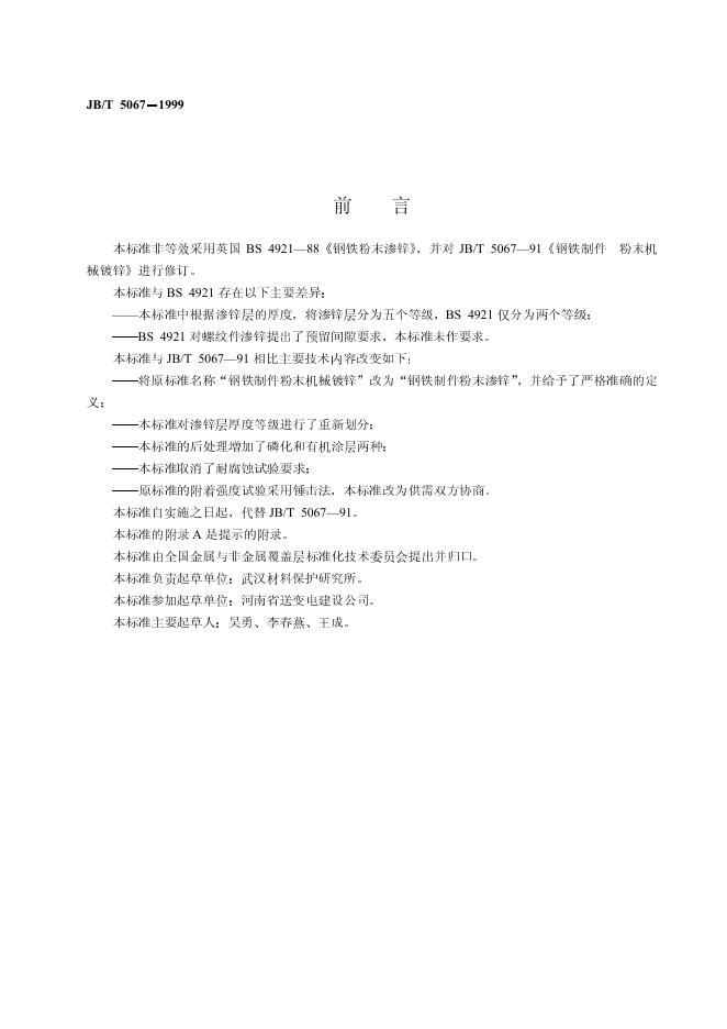 JB/T 5067-1991 钢铁制件 粉末机械镀锌