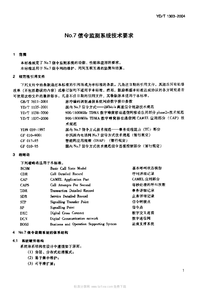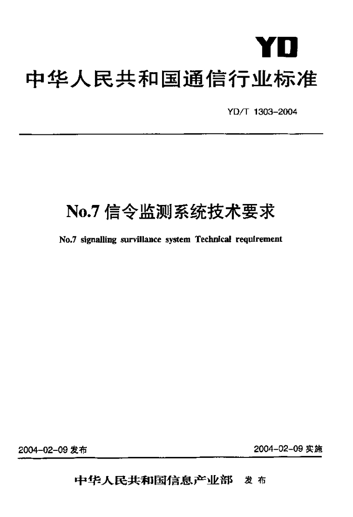 YD/T 1303-2004 No.7 信令监测系统技术要求