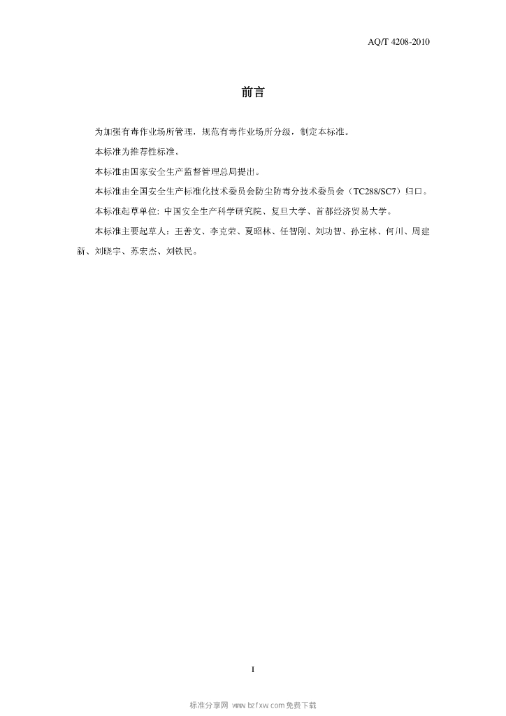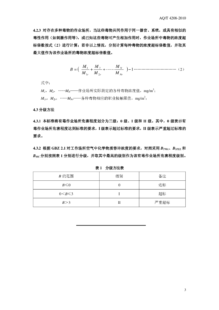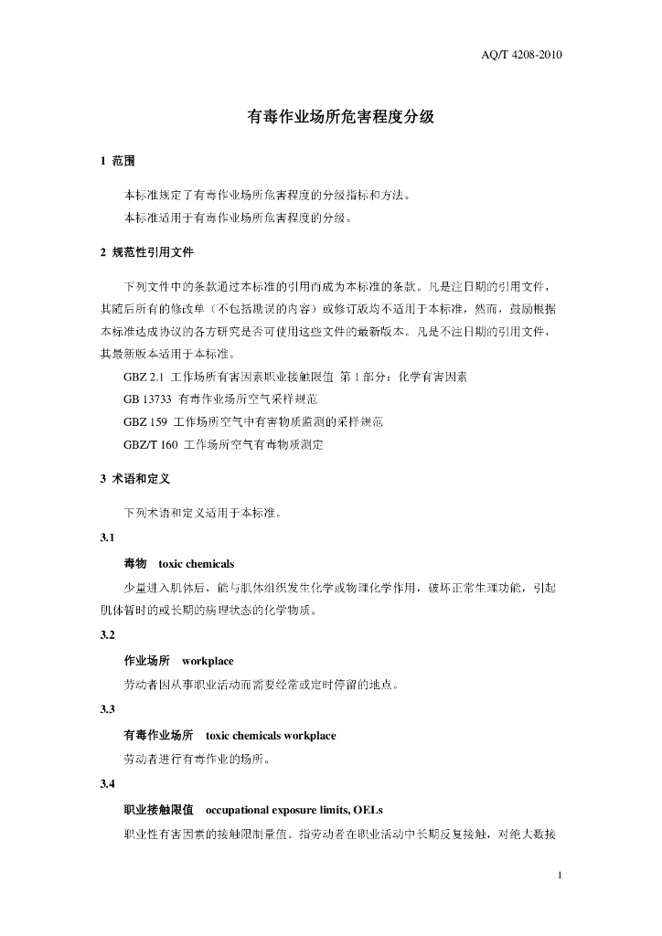 AQ/T 4208-2010 有毒作业场所危害程度分级