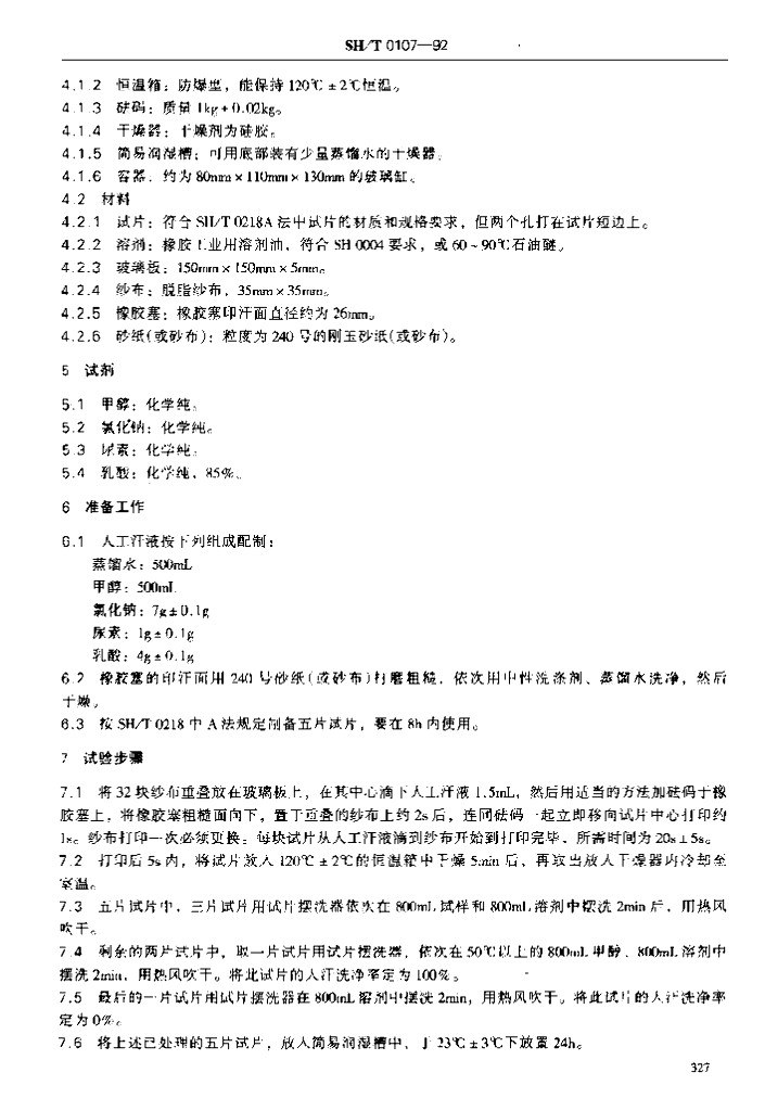 SH/T 0107-1992 防锈油人汗洗净性试验法