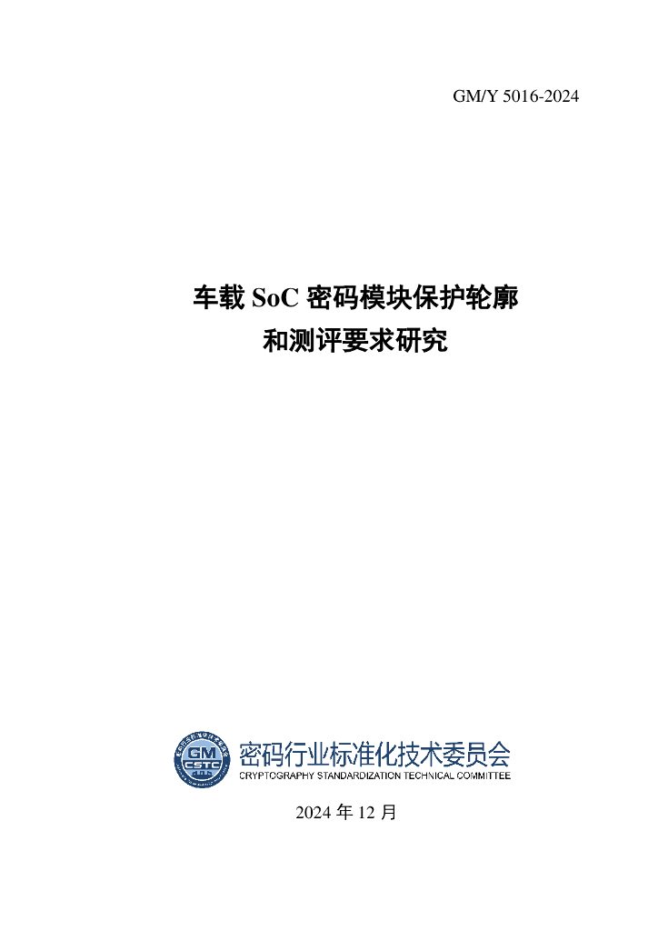 GM/Y 5016-2024 车载SoC密码模块保护轮廓与测评要求研究