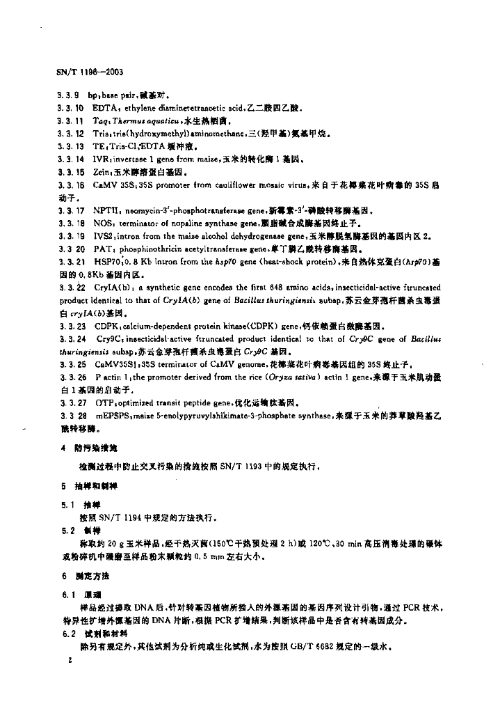SN/T 1196-2003 玉米中转基因成分定性PCR检测方法