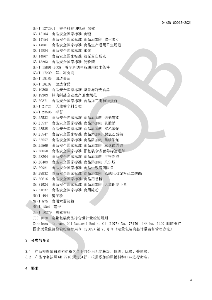Q/KSW 0003S-2021 肉灌肠类制品系列