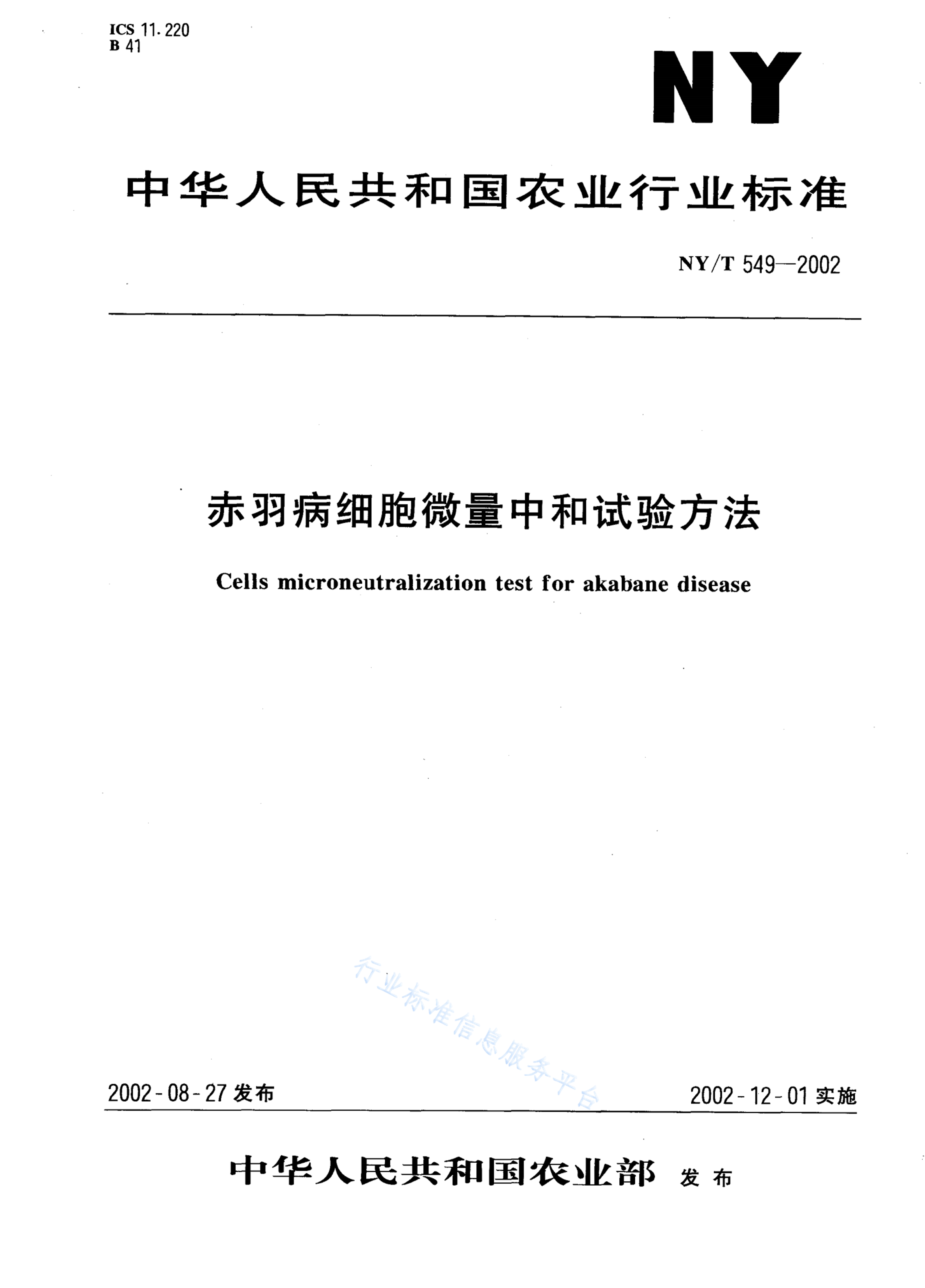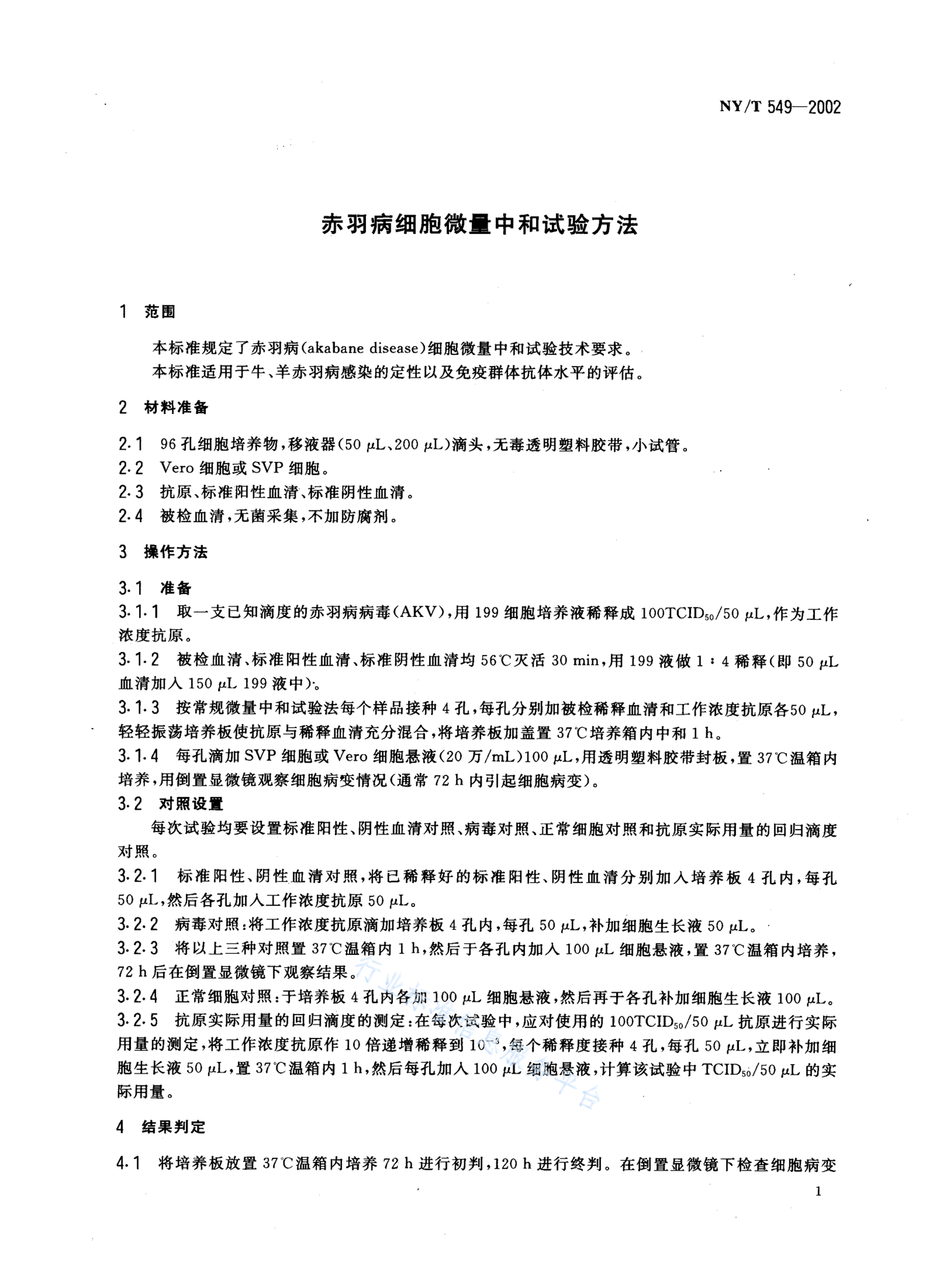 NY/T 549-2002 赤羽病细胞微量中和试验方法