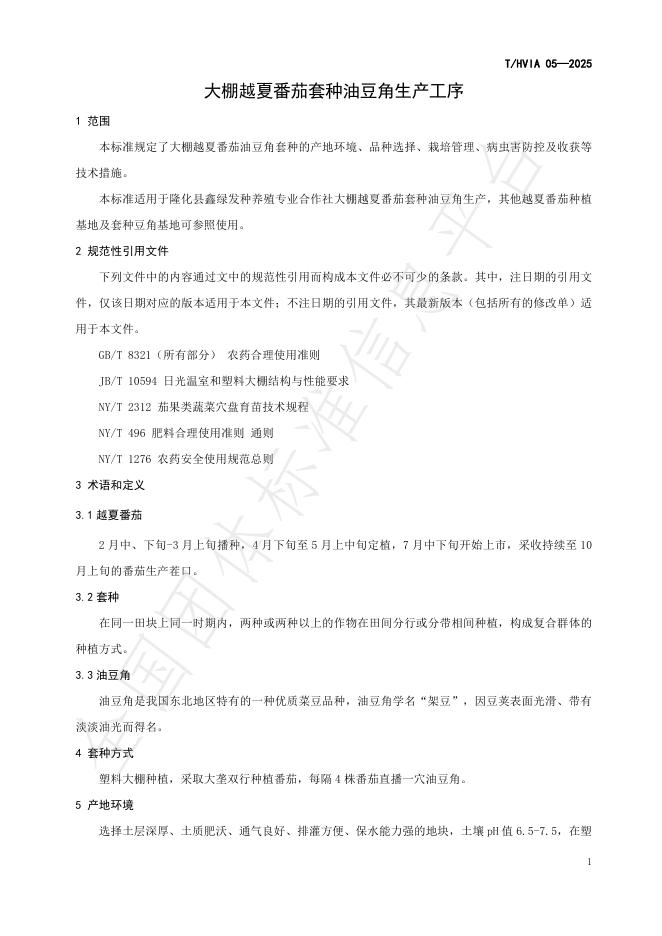 T/HVIA 05-2025 大棚越夏番茄套种油豆角生产工序