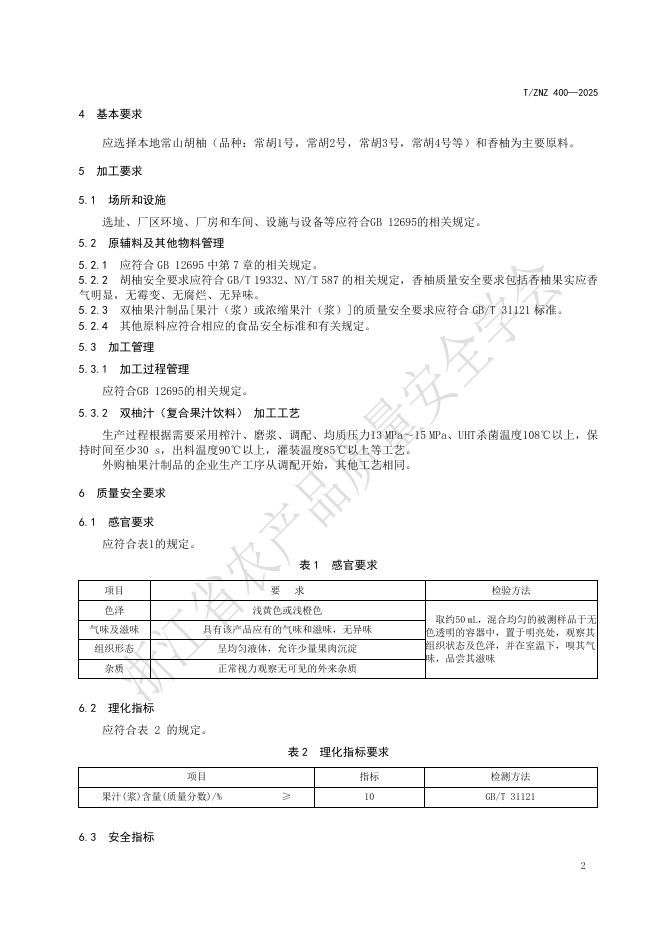 T/ZNZ 400-2025 衢州味道 双柚汁