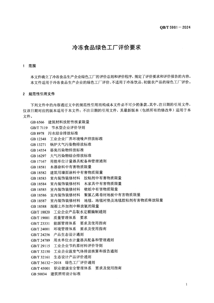 QB/T 5981-2024 冷冻食品绿色工厂评价要求