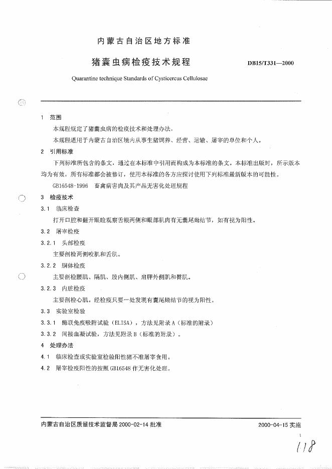 DB15/T 331-2000 猪囊虫检疫技术规程