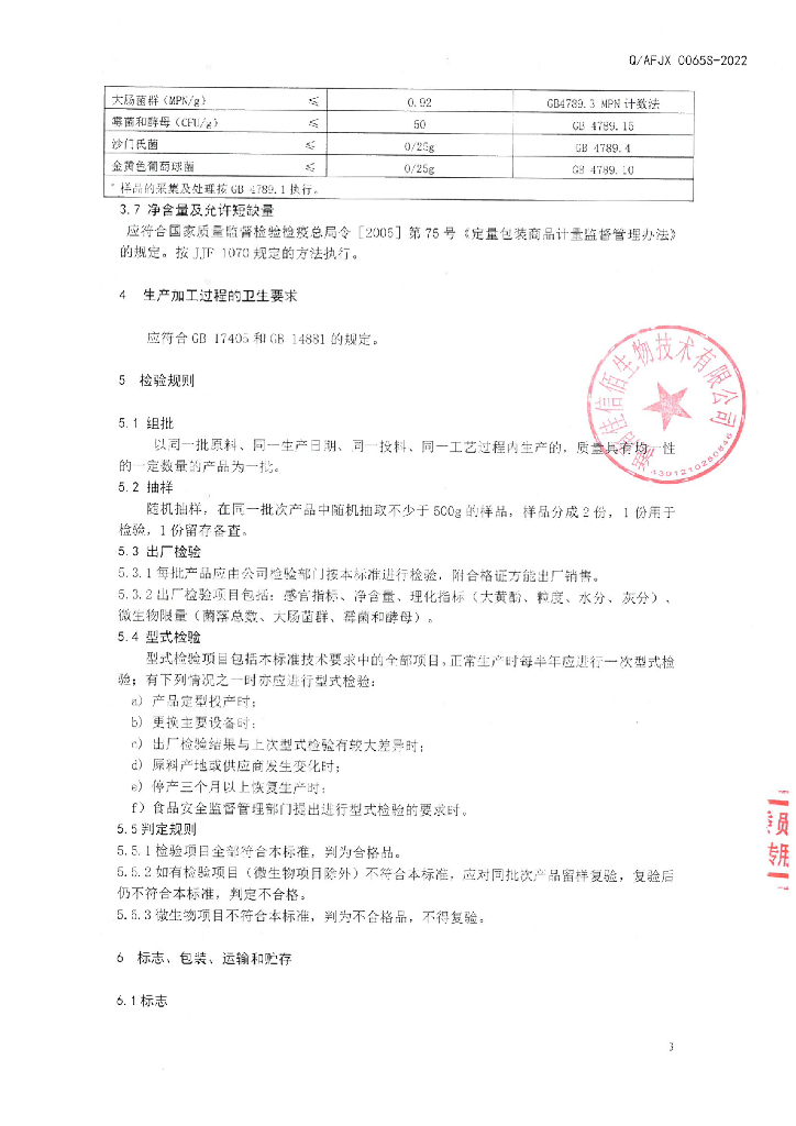 Q/AFJX 0065S-2022 保健食品原料 决明子提取物