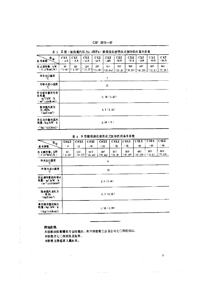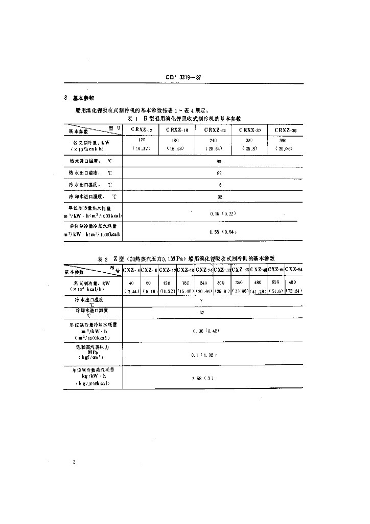 CB 3319-1987 船用溴化锂吸收式制冷机型式和基本参数