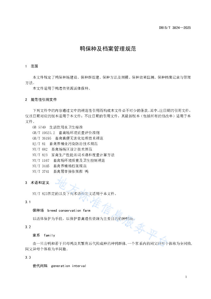 DB15/T 3824-2025 鸭保种及档案管理规范