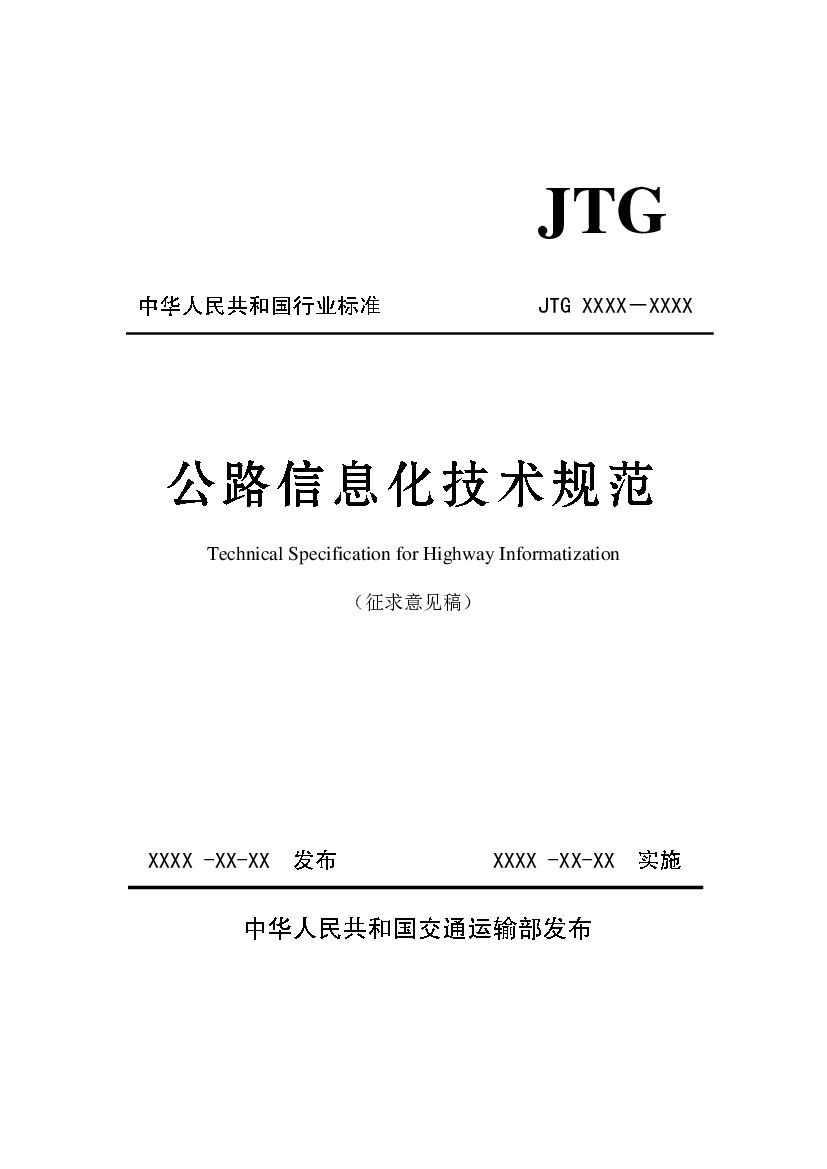JTG XXXX-XXXX 公路信息化技术规范(征求意见稿)