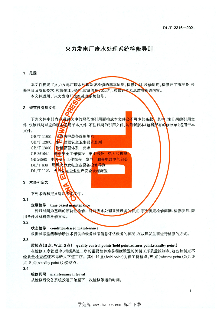 DL/T 2216-2021 火力发电厂废水处理系统检修导则