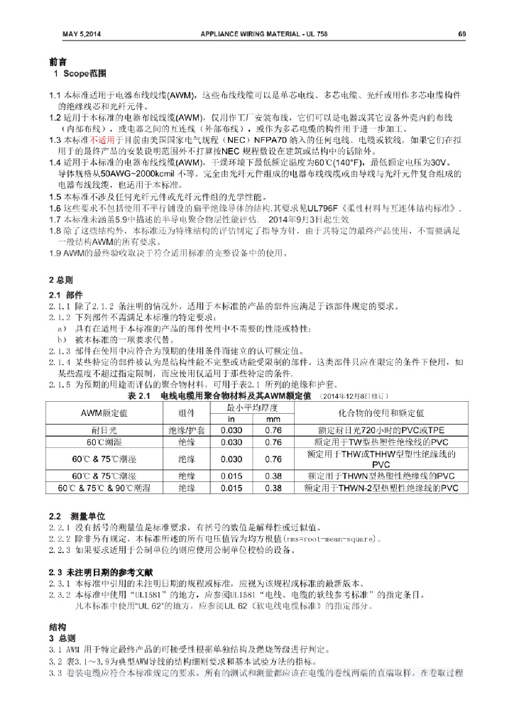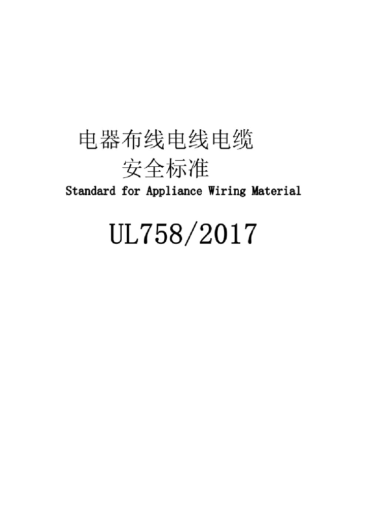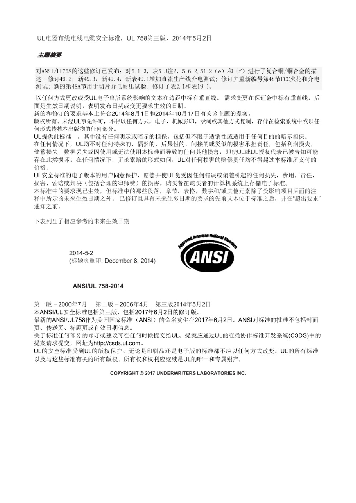 UL 758-2017 电器布线电线电缆安全标准