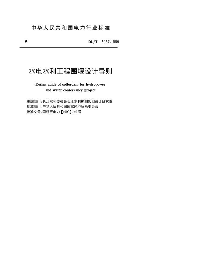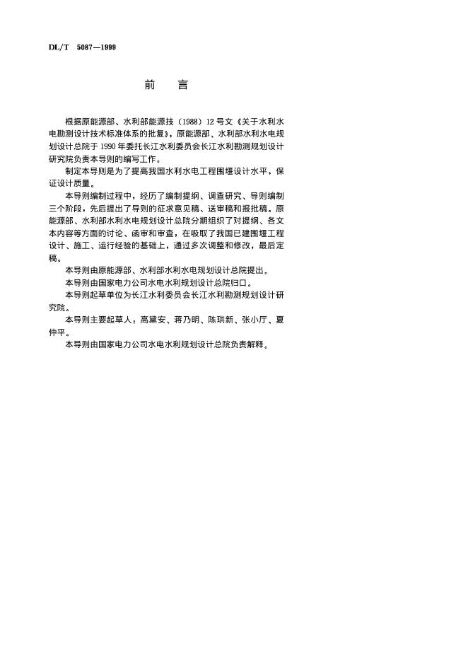 DL/T 5087-1999 水利水电工程围堰设计导则(附条文说明)