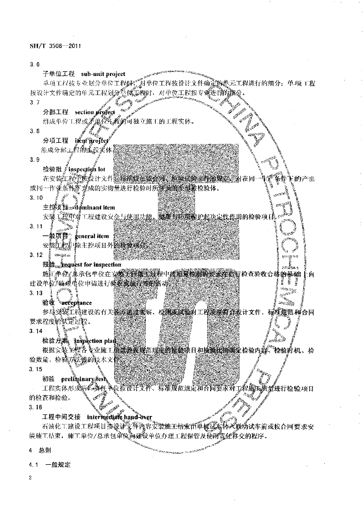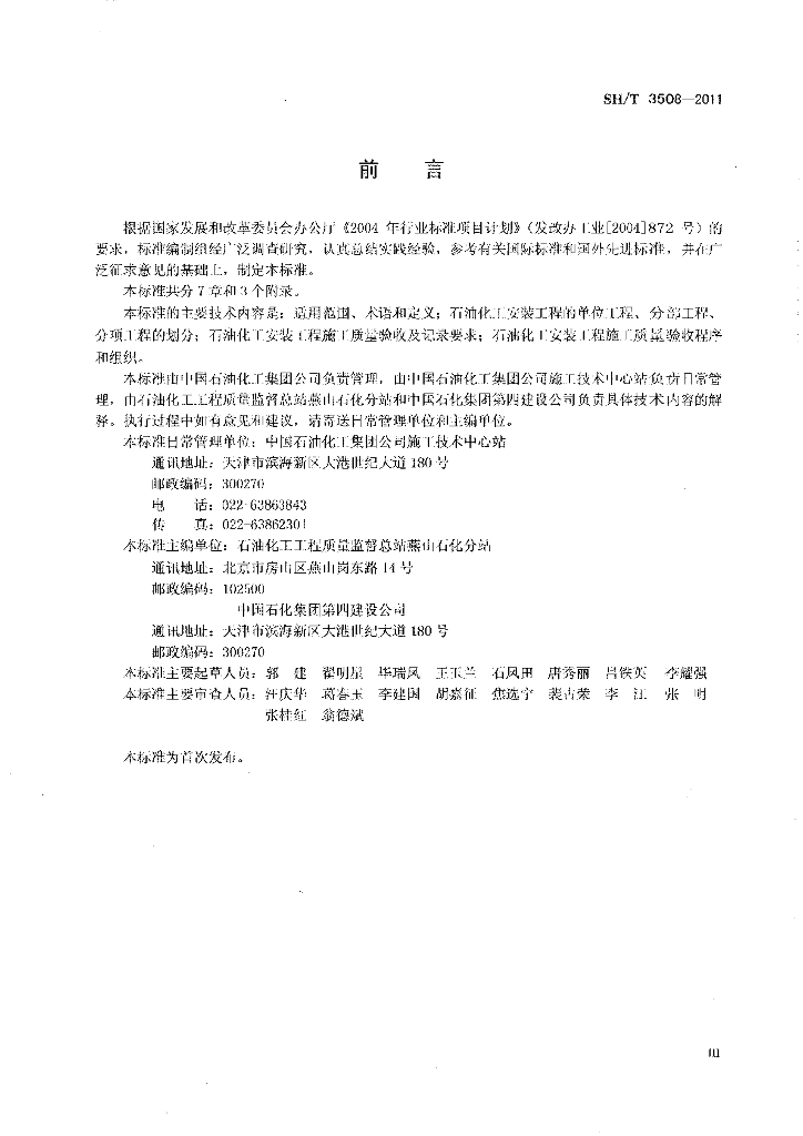 SH/T 3508-2011 石油化工安装工程施工质量验收统一标准