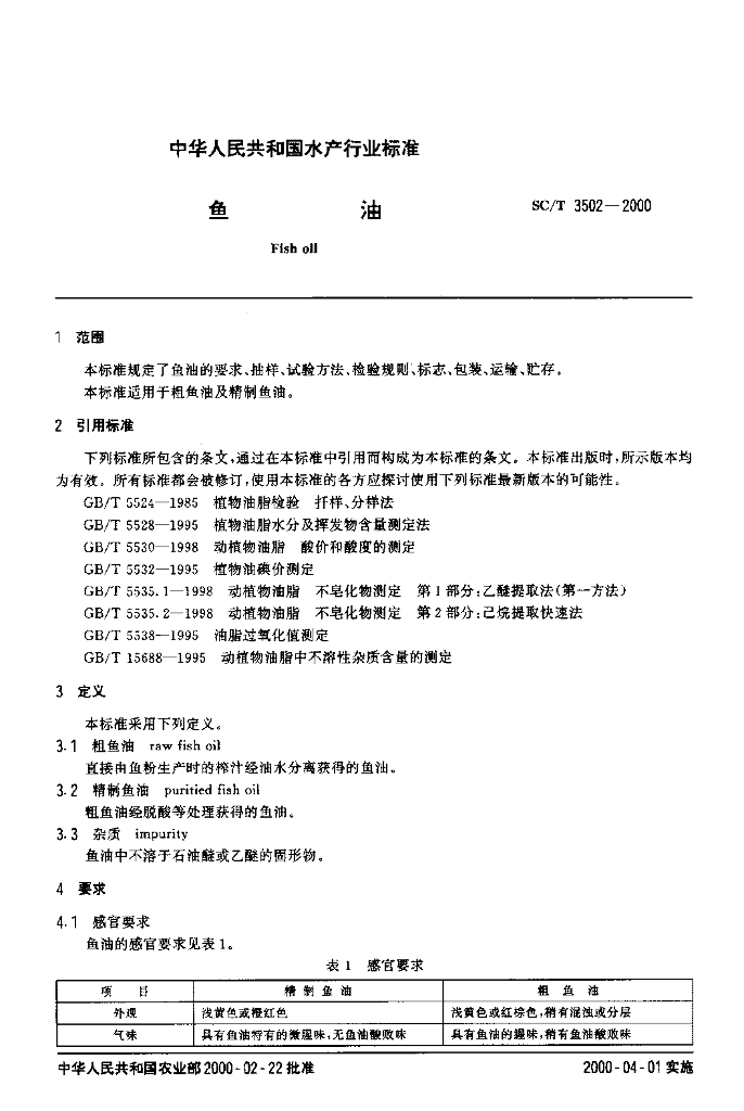 SC/T 3502-2000 鱼油