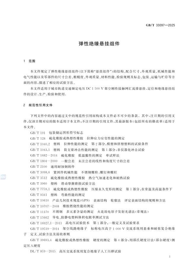 GB/T 33097-2025 弹性绝缘悬挂组件