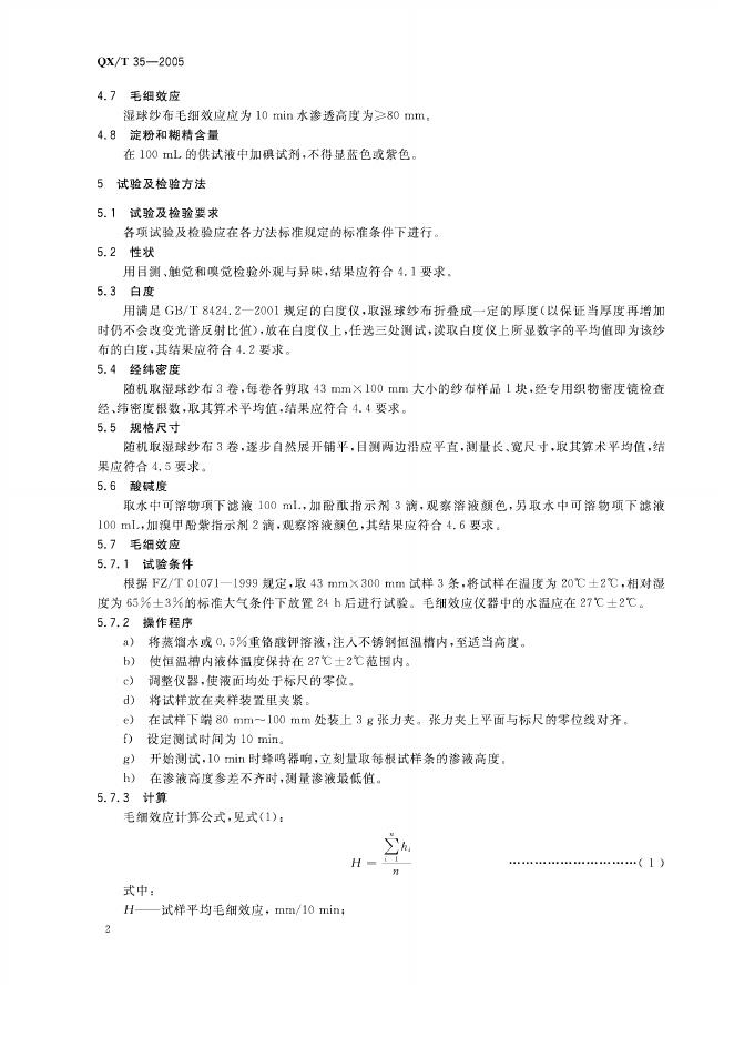 QX/T 35-2005 气象用湿球纱布