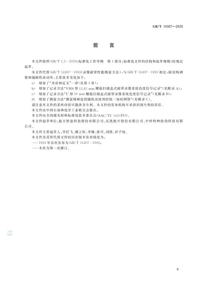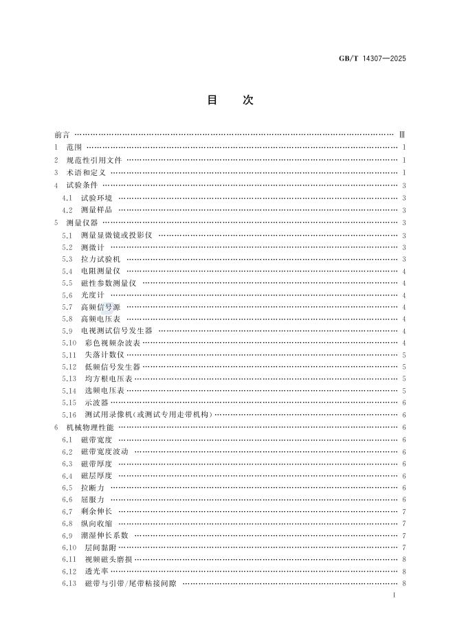 GB/T 14307-2025 非广播录像磁带性能测量方法